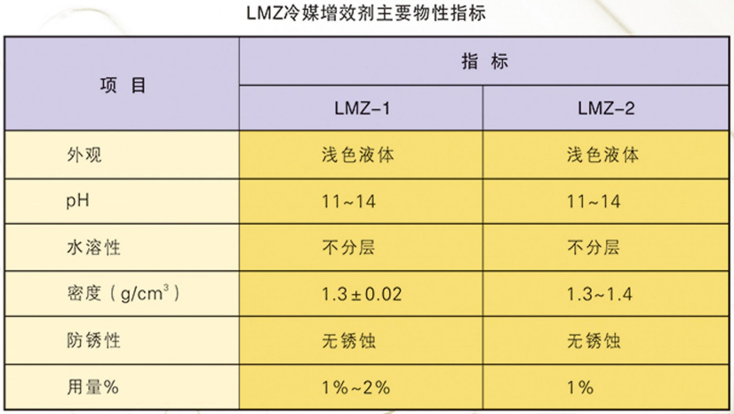 LMZ型冷媒增效劑為LM型冰河冷媒系列產(chǎn)品的補充代用品,開發(fā)本產(chǎn)品的首要目的是考慮到地處邊遠地區(qū)的廠家,由于長途運輸不便,不便直接添加冷媒,則可以選用該冷媒增效劑。因本品屬于濃縮型添加劑,用量僅為冷卻介質(zhì)水溶液的1%-2%,將其加入貴公司原來用的酒精、乙二醇、丙二醇或丙三醇等水溶液介質(zhì)中,便可以起到抑制揮發(fā),提高載冷能力,防止冷卻介質(zhì)銹蝕設備等作用,本品在防銹能力上尤為突出。由于以上這些作用,保證您的冷卻系統(tǒng)安全穩(wěn)定地運轉,從而大大降低了運行成本,同時確保您的設備使用壽命延長一倍以上。