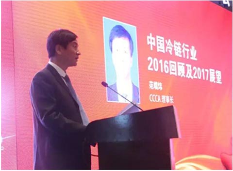 中冷聯(lián)盟理事長、中外運物流投資控股有限公司總經(jīng)理范端煒發(fā)表主旨報告:“中國冷鏈行業(yè)2016回顧及2017展望”。