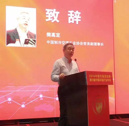 中國制冷空調(diào)工業(yè)協(xié)會常務(wù)副理事長樊高定為大會開幕致辭。