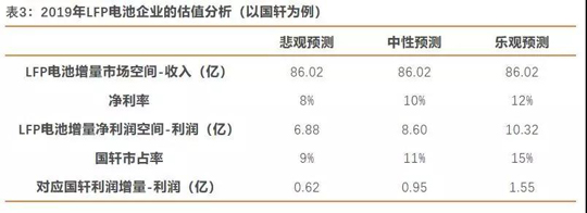 對(duì)2019年LFP電池企業(yè)的估值分析(以國(guó)軒為例)