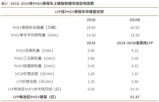 LFP在PHEV乘用車(chē)市場(chǎng)空間分析