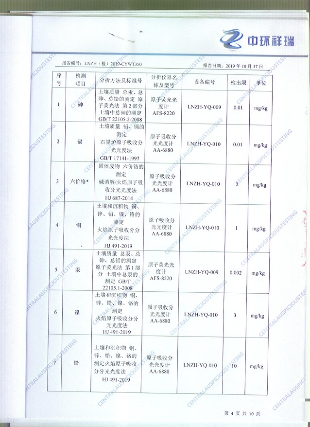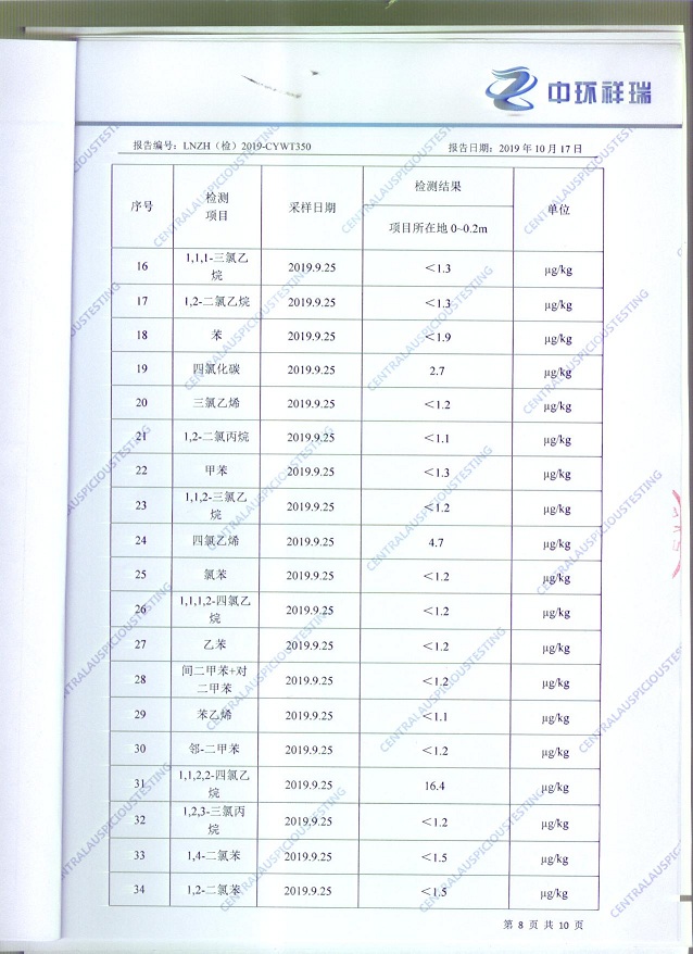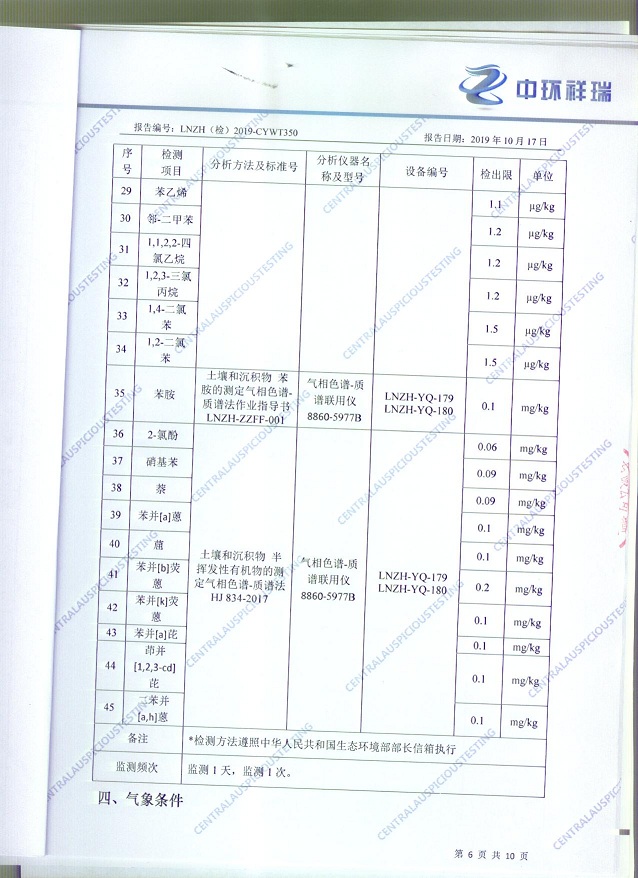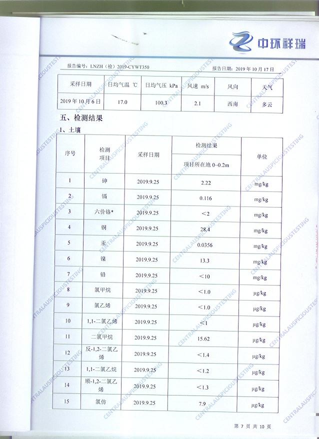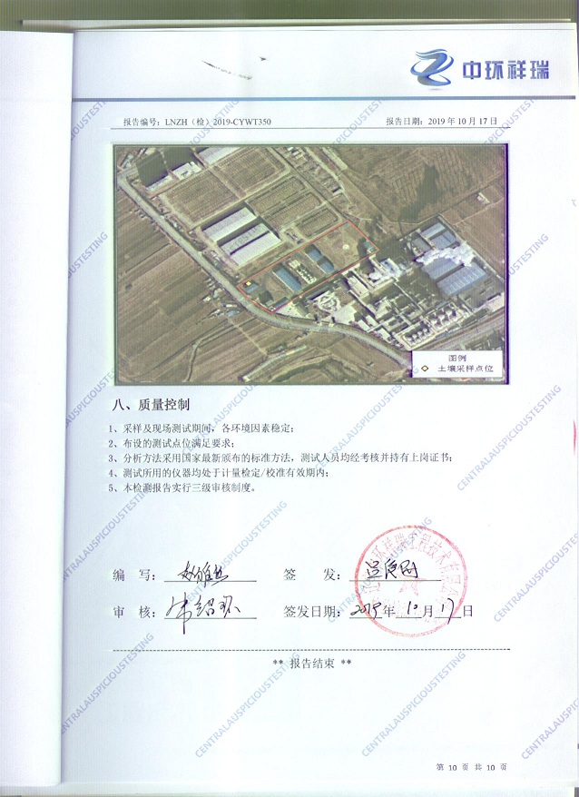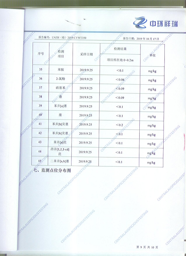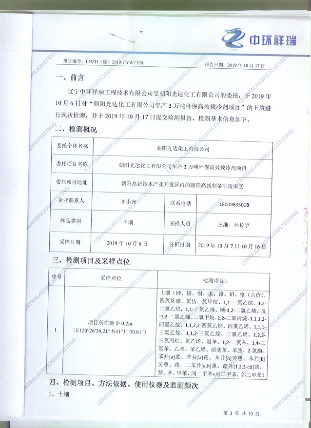 朝陽光達化工有限公司西廠區(qū)土壤檢測報告公示