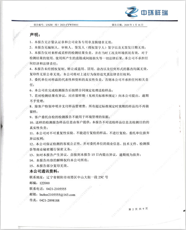 朝陽光達(dá)化工有限公司西廠區(qū)土壤檢測報告公示