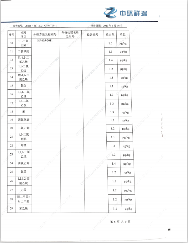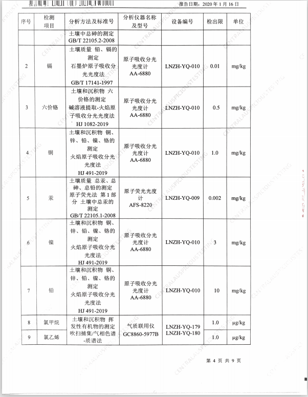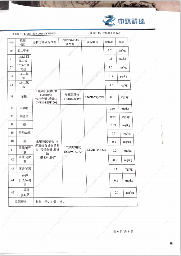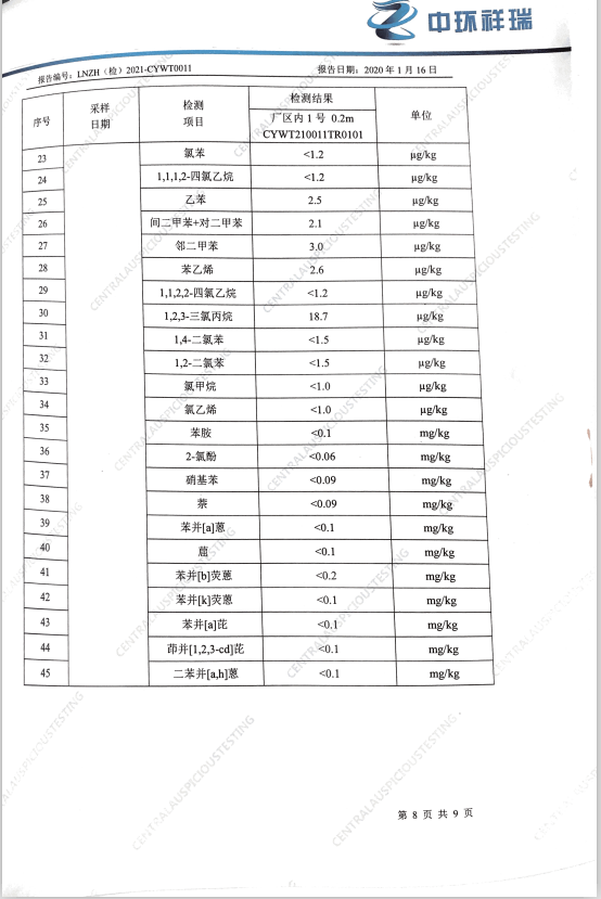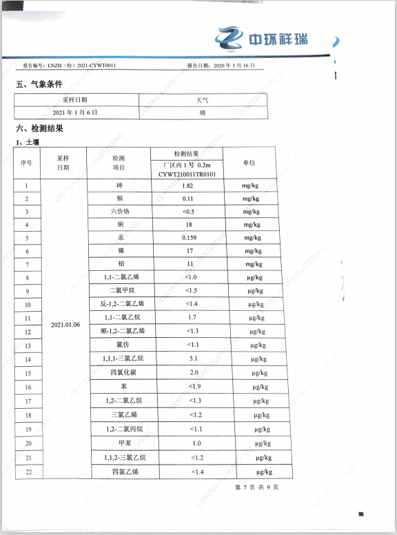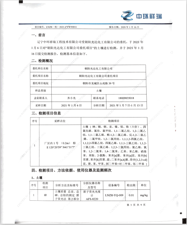 朝陽光達(dá)化工有限公司老廠區(qū)土壤檢測報告公示